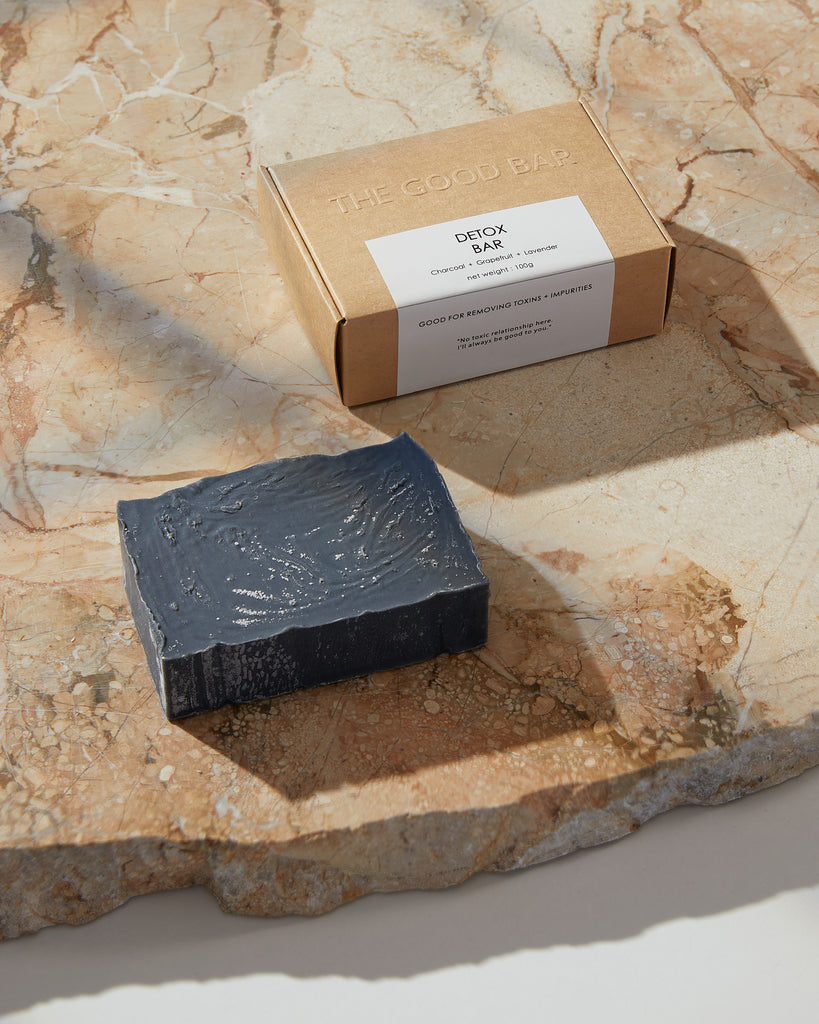 Human skin is a permeable layer that absorbs dirt and toxins from the environment. These contaminants are especially problematic for people with skin sensitivity and conditions like eczema and psoriasis. This is where an activated charcoal soap helps detoxify skin. The charcoal pulls out dirt, toxins, and bacteria like a magnet, leaving skin naturally clean without any harsh chemicals. This bar contains lavender and grapefruit essential oils, which are known for their antifungal and antibacterial properties. Coconut & sustainable palm oil help fight against free radicals, while the high olive content leaves skin moisturized for a more youthful glow.